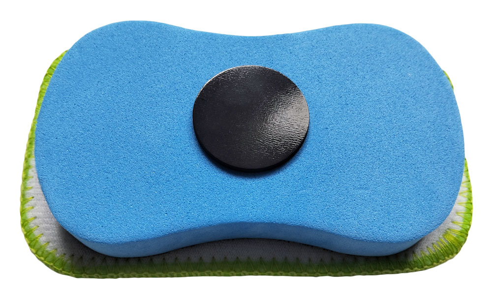 Zawsze pod ręką: Dzięki mocnemu, okrągłemu magnesowi umieszczonemu na przedniej części, gąbka idealnie trzyma się tablic magnetycznych oraz innych metalowych powierzchni.