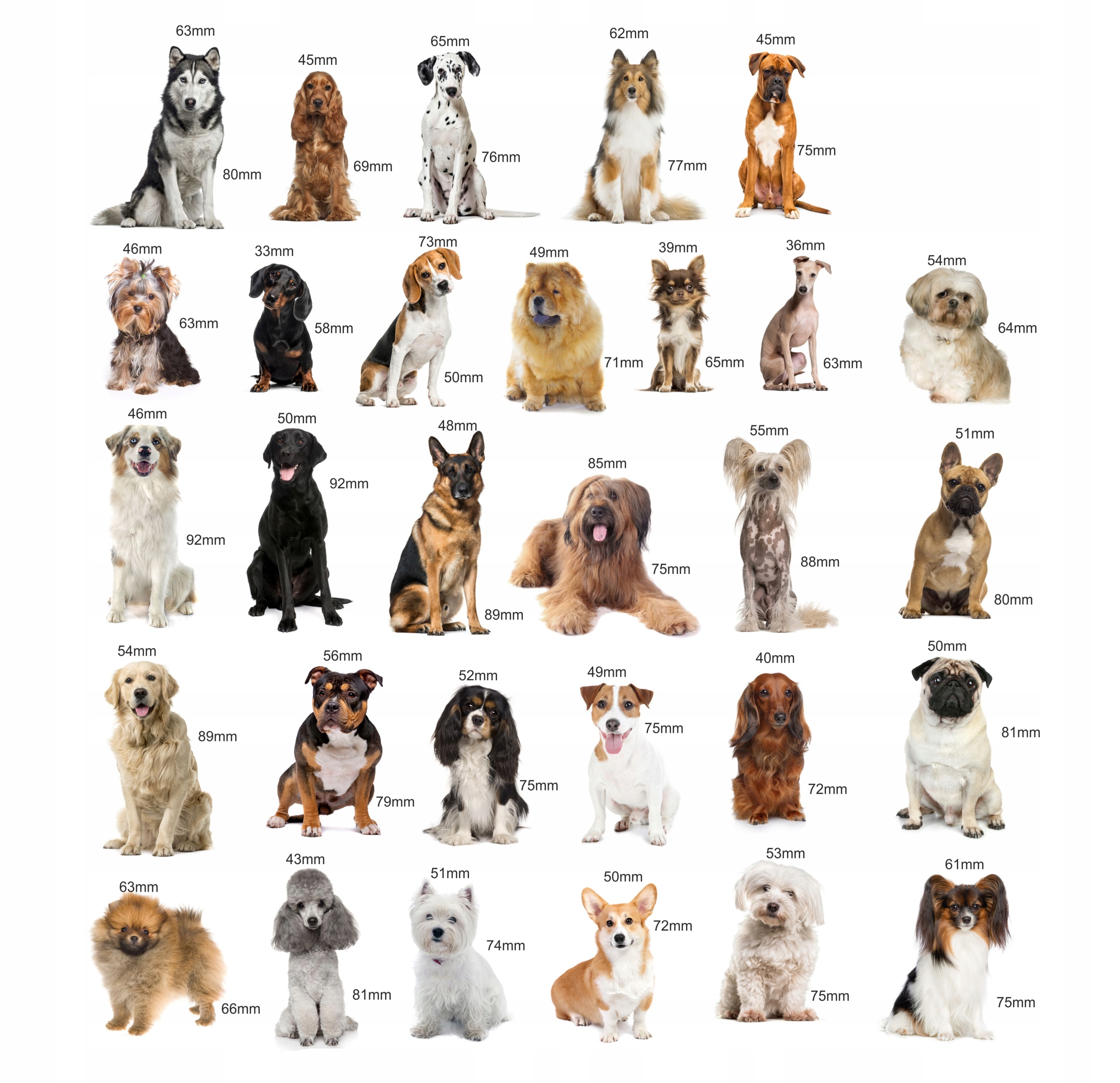 🐕 Spis ras w zestawie (30 sztuk): W zestawie znajdziesz aż 30 różnych piesków, m.in.: