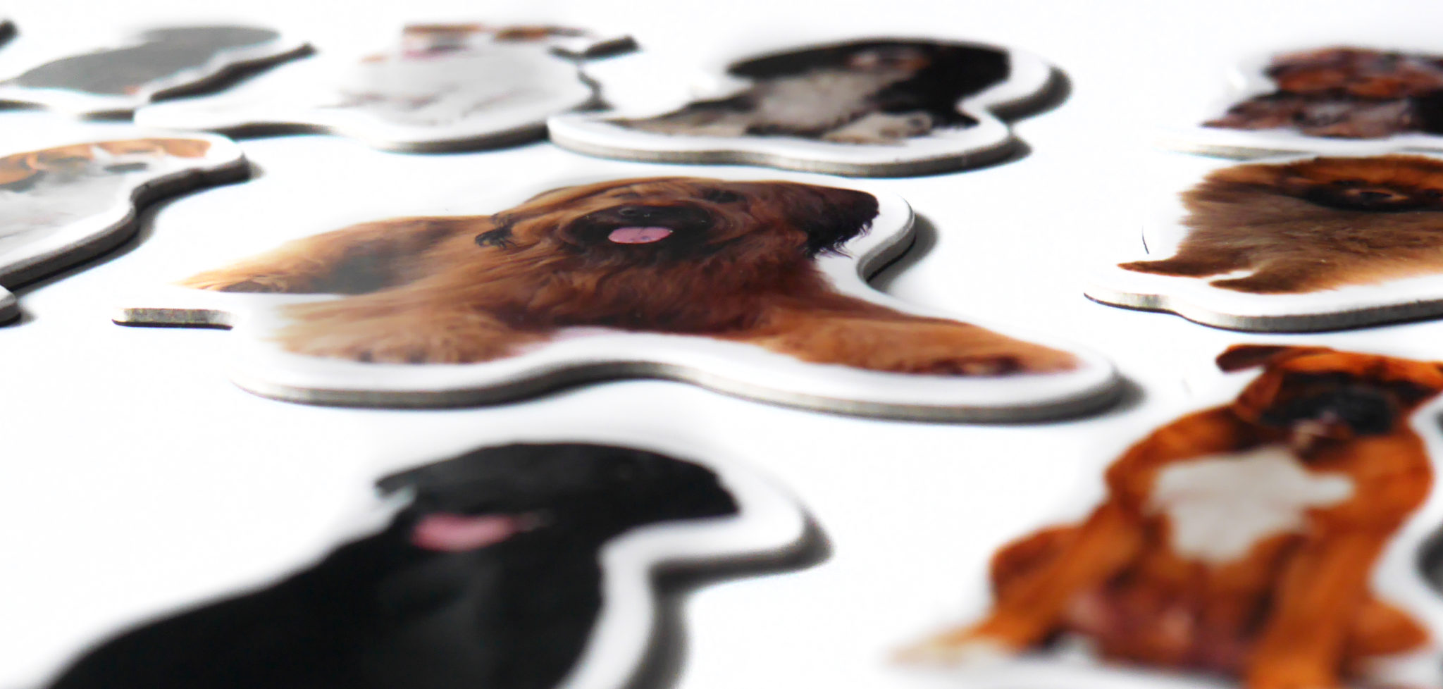 Precyzyjne wycięcie: Każdy piesek posiada unikalny kształt, wiernie oddający sylwetkę danej rasy, uzyskany dzięki zastosowaniu robionych na zamówienie, precyzyjnych wykrojników.