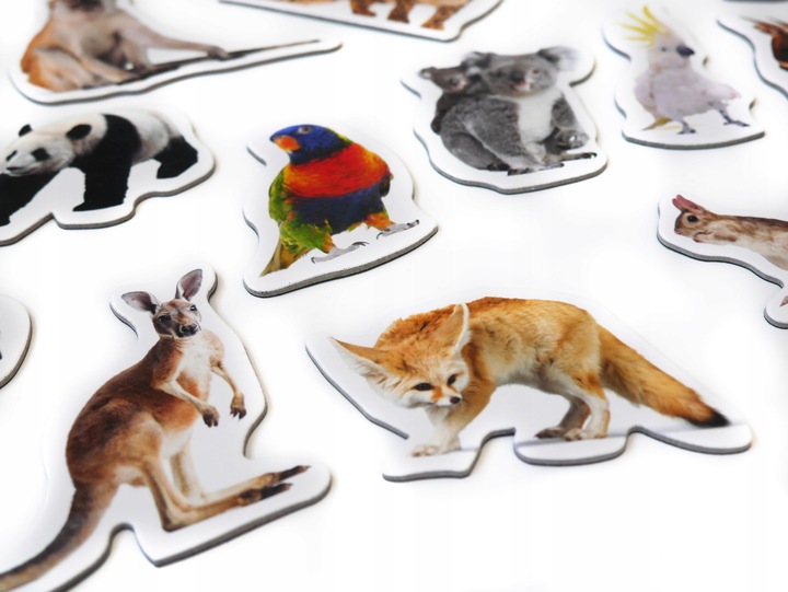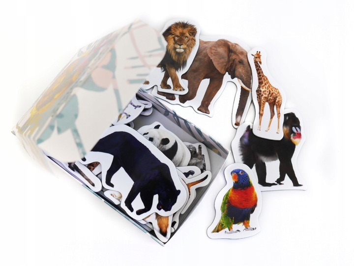 Zapraszamy do wspólnej zabawy i nauki w sercu dzikiej dżungli i gorącej sawanny! Nasz zestaw to aż 28 kolorowych magnesów, które zamienią Twoją lodówkę lub tablicę magnetyczną w niesamowitą krainę pełną egzotycznych stworzeń. Dzięki zastosowaniu dodatkowego wzmocnienia z litej tektury, magnesy są sztywne, grube i idealnie dopasowane do małych rączek odkrywcy.