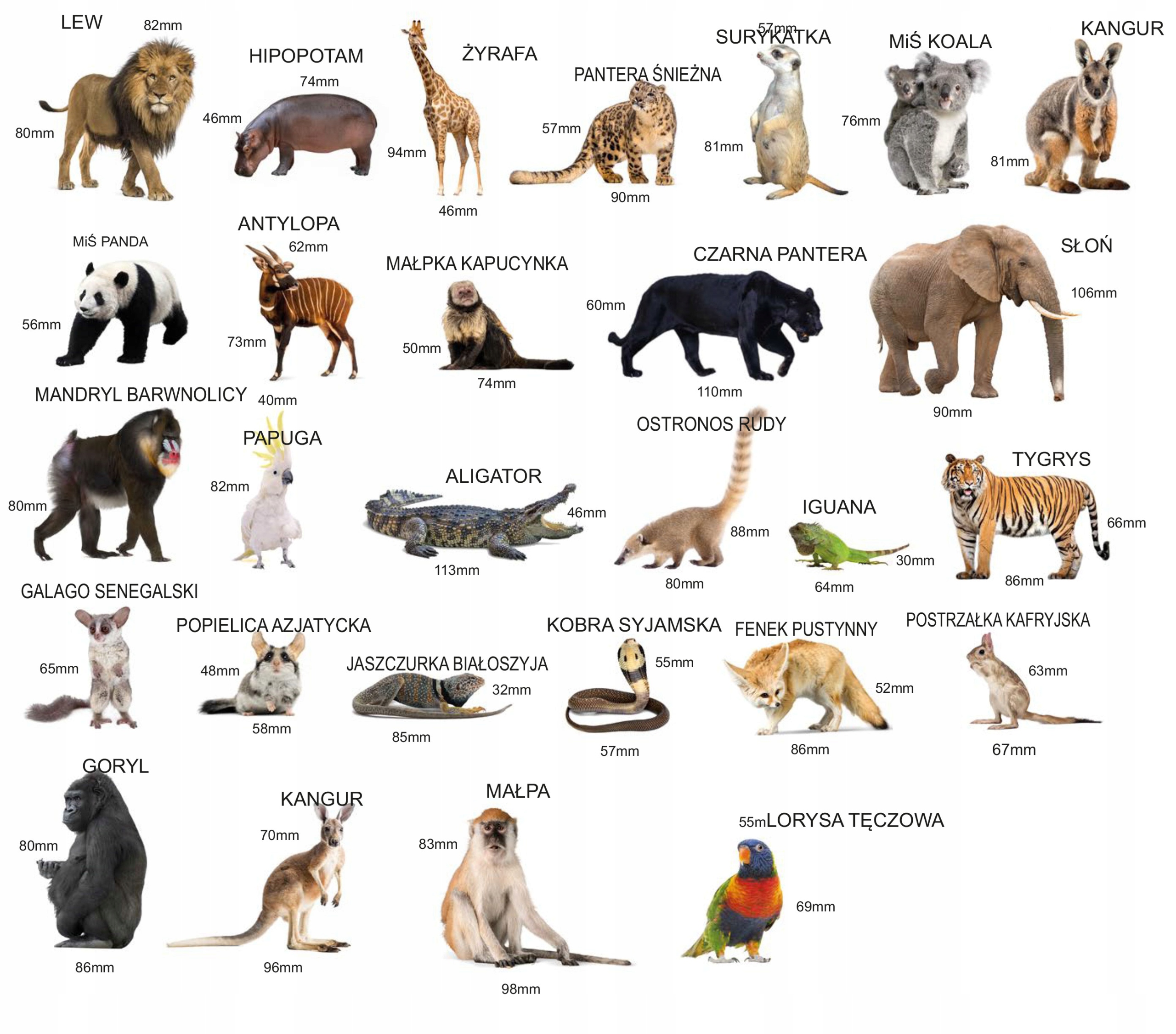 Nauka przez zabawę: Dziecko poznaje różnorodne, fascynujące gatunki – od potężnego słonia i lwa, po egzotyczną lorysę tęczową czy urocze koala.
