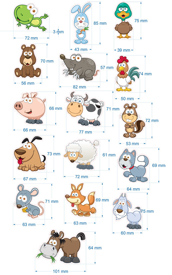 Precyzyjne wycięcie: Każde zwierzątko posiada unikalny kształt, uzyskany dzięki zastosowaniu robionych na zamówienie wykrojników.