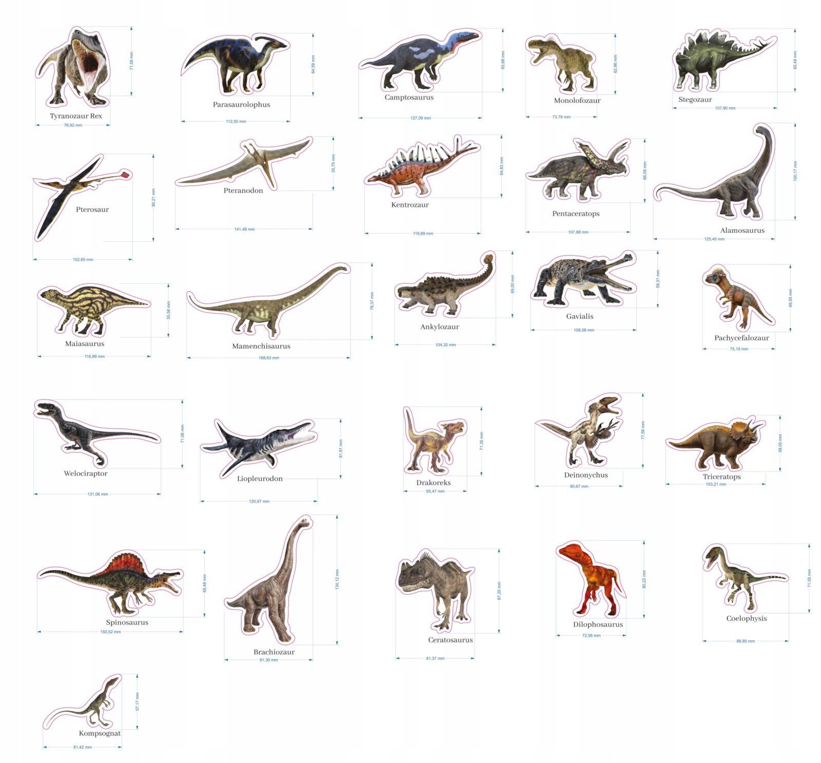 Zestaw magnesów na lodówkę „DINOZAURY” – 26 sztuk