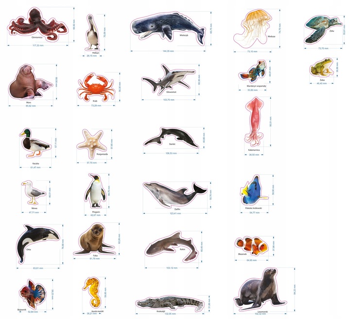🐳 Spis zwierząt w zestawie (26 sztuk):
