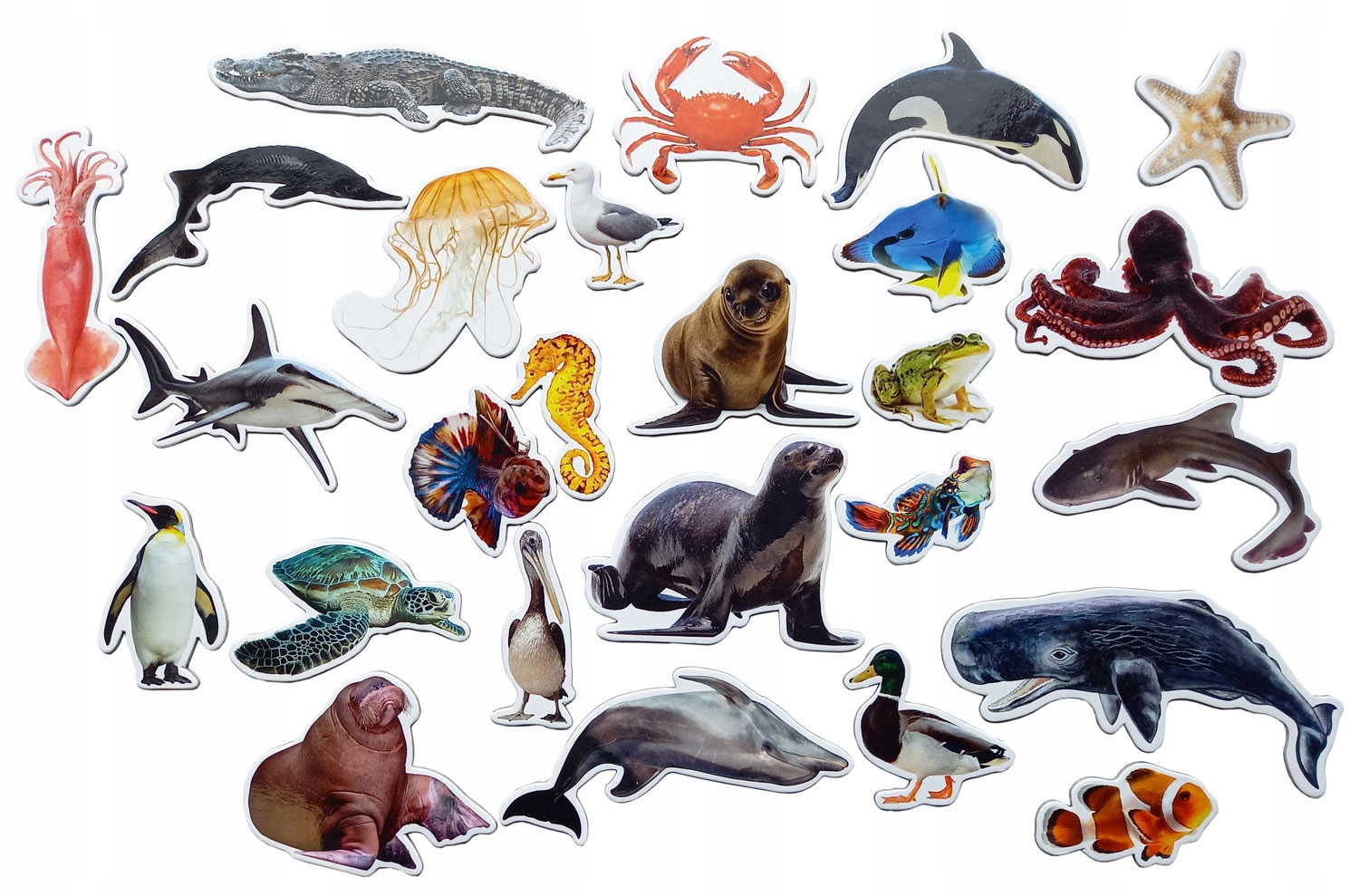 🐬 Zestaw Magnesów na Lodówkę „Poznaję Zwierzęta Wodne” – 26 sztuk