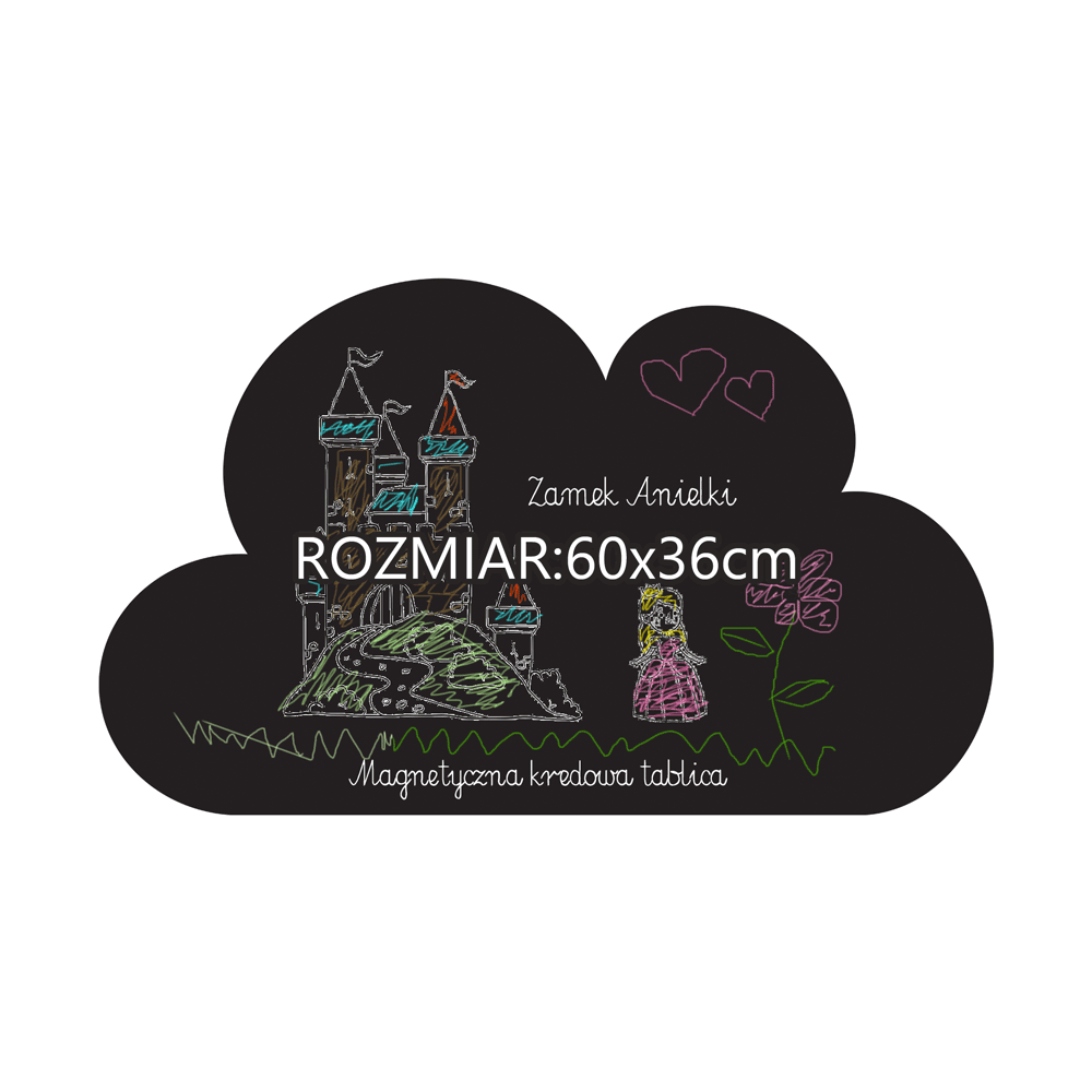 Cena obejmuje 1 szt. Tablica ferromagnetyczna NS z kredowym laminatem z klejem o grubości 0,5 mm w kształcie chmurki o wymiarach 600x360mm.