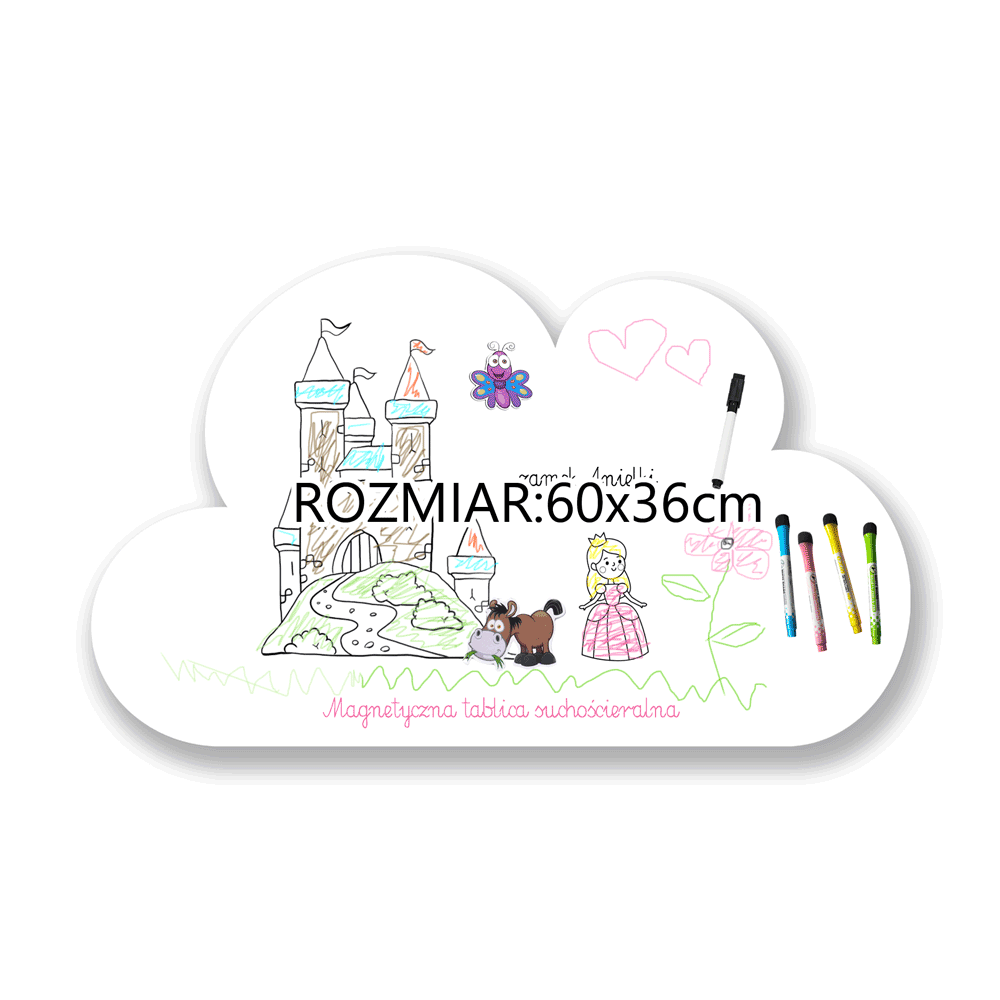 Magnetyczna tablica suchościeralna – praktyczna i stylowa w jednymMagnetyczna tablica suchościeralna w kształcie chmurki to funkcjonalne rozwiązanie, które łączy wygodę użytkowania z nowoczesnym designem. Idealnie sprawdzi się w pokoju dziecka, kuchni, biurze czy przestrzeni do nauki, dodając wnętrzu lekkości i kreatywnego charakteru.