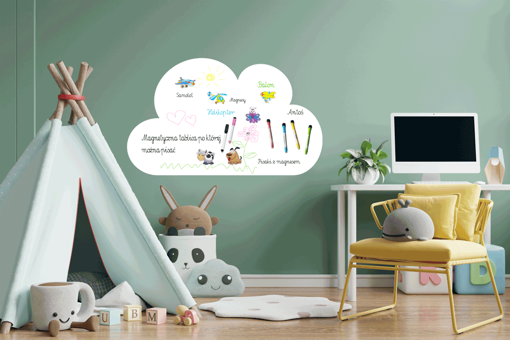 Magnetyczna tablica suchościeralna w kształcie chmurki to wyjątkowy produkt, który łączy praktyczne zastosowanie z estetycznym wyglądem. Świetnie sprawdzi się w pokoju dziecka, kuchni, biurze czy przestrzeni edukacyjnej, wprowadzając do wnętrza lekkość i kreatywny charakter.