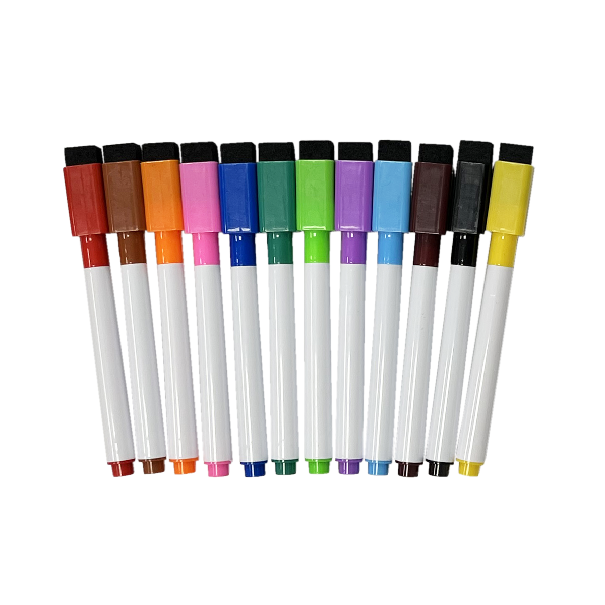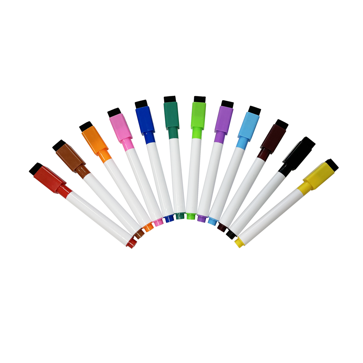 Praktyczny zestaw 12 pisaków suchościeralnych w 12 różnych, intensywnych kolorach.